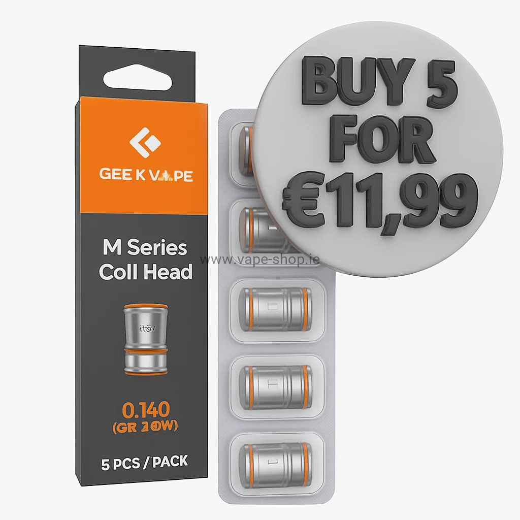 5 x GeekVape M Series Coil Heads in your selected resistance.